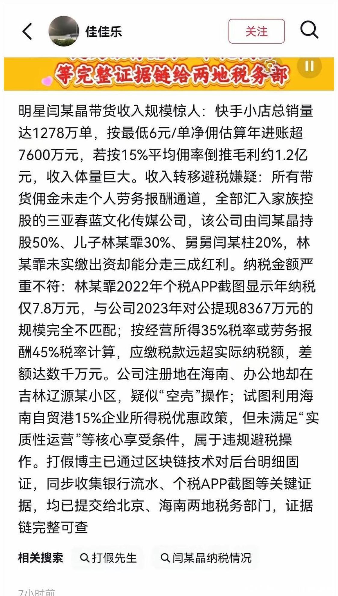 事情的后续来得又急又猛。2026年1月初 她的几个平台账号被限流甚至禁关注 粉丝掉得肉眼可见;好几个民生品牌的代言接连告吹 佐香园、统厨这些牌子直接停产换包装,还放话说要追责损失;原本谈好的辽宁春晚语言类节目也临时把她拿了下来。儿子林傲霏的戏路也跟着遭殃 好几个合作方悄悄撤了他的名字。1月11日,她在朋友圈发了一封打印出来的道歉信 只有签名是手写的,承认自己“思想出现了偏差”“忘了对劳动人民的尊重”。儿子转发时补了一句“娘的错 儿子担”。可网友的反应很冷:迟来的道歉 薄薄的一页纸,碎了的信任哪有那么容易拼回去。这场风波到最后 其实已经不只是闫学晶一个人的事。。它像一面镜子,硬生生照出了流量经济底下那点残酷真相 也给所有吃公众饭的人提了个醒:观众给你的掌声和钱,是喜欢你这个人 而不是喜欢你变得高高在上。。你可以住大房子、开好车、戴名表,但千万别忘了 那份喜欢最初是多少还在为柴米油盐发愁的普通人一点点给起来的。。忘了来时的路 再往前走也容易摔得很惨。。闫学晶也许会慢慢淡出视线也许会在某个安静的冬天里好好反省。。但这场风波留下的教训,恐怕比她演过的任何一部戏都要刻骨铭心:接地气从来不是人设它是做人最底线的温度。。丢了它再热闹的舞台,也留不住人心。。