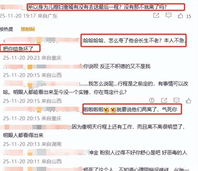 然后呢,各种营销号就编起了聚少离多、感情破裂的剧本,评论区里少说有一半人信了,还有不少人在替他们可惜。