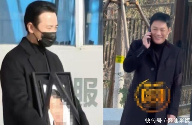 这一幕恰恰被拍下来,虽然笑得不明显,但在肃穆的殡仪馆外,格外刺眼。