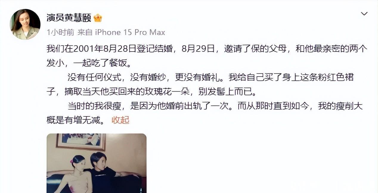 此前,黄慧颐发文: