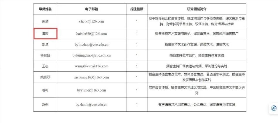 2024年1月,中国传媒大学博士研究生招生目录正式公布,海霞以博士生导师身份亮相名录。
